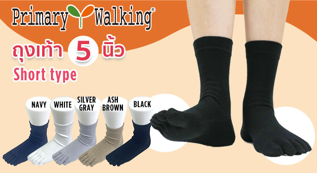 ถุงเท้า 5 นิ้ว Primary Walking®ใช้ฝ้ายที่ดีที่สุดของญี่ปุ่น สวมใส่สบาย ดูดซับเหงื่อได้ดี