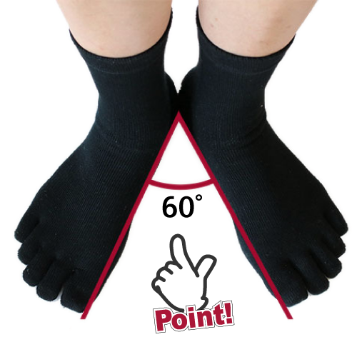 เนื่องจากเป็นถุงเท้า 5 นิ้ว นิ้วจึงเปิดออกตามธรรมชาติ และนิ้วทั้งห้าจึงแยกจากกันเพื่อความสมดุลที่เหมาะสม