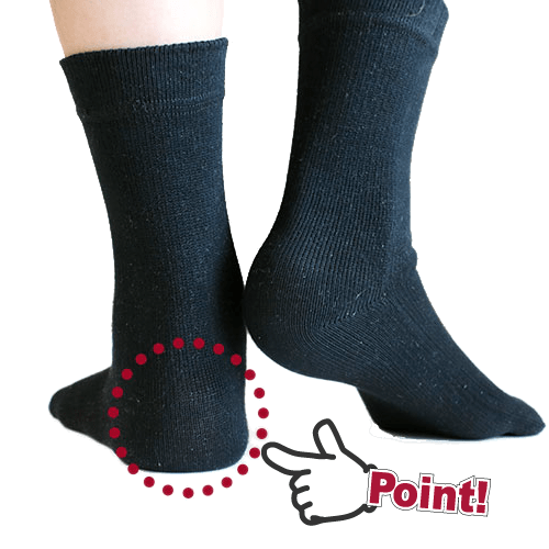 วิธีการถักที่พิเศษ ช่วยยืดนิ้วเท้าและลงน้ำหนักไปที่ส้นเท้าอย่างเป็นธรรมชาติ ด้วยเหตุนี้จึงสามารถยืนตัวตรงกับแรงโน้มถ่วงได้ เมื่อรู้สึกว่านิ้วถูกยืดออก และแรงกดอยู่ในระดับปานกลาง คุณจะ "รู้สึกดี!" ราวกับว่าถูกนวด
